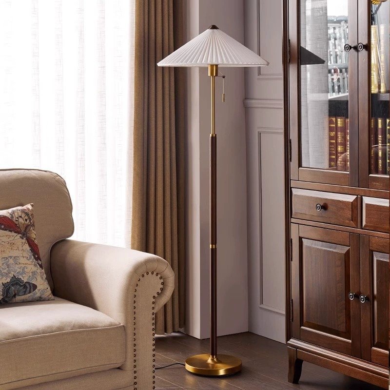 Elevate your home with the Classic Crest Floor Lamp, a perfect blend of vintage charm and refined craftsmanship. Featuring a beautifully pleated fabric shade paired with a robust, antique-finished base, this lamp casts a warm, inviting glow that enhances any traditional or vintage-inspired interior.